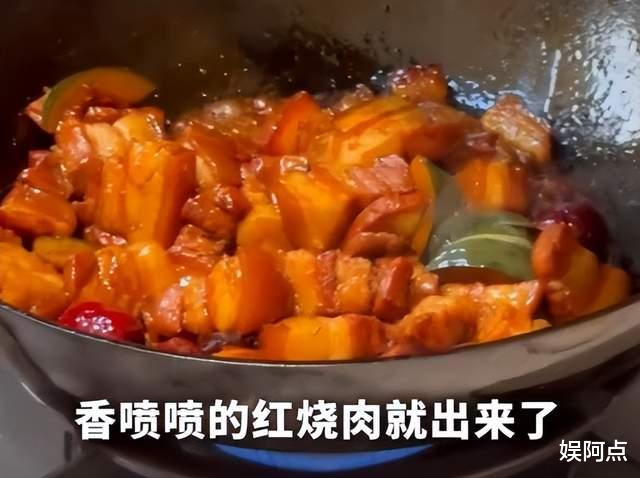 坐在一旁的田朴珺早已按耐不住了,闻到香喷喷的红烧肉瞬间食欲大增,拿起筷子便往嘴里塞,一口爆汁的感觉真是太好了。